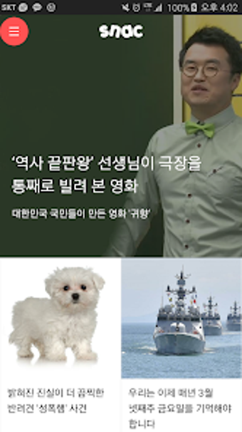 يوفر سناك SNAC معلومات حول مواضيع مختلفة، بما في ذلك القضايا الكورية والدولية، استكشاف المعرفة، الثقافة الشعبية، وأنشطة الترفيه. التطبيق مثالي لأولئك الذين يقودون حياة مشغولة ويرغبون في البقاء على اطلاع أثناء التنقل.